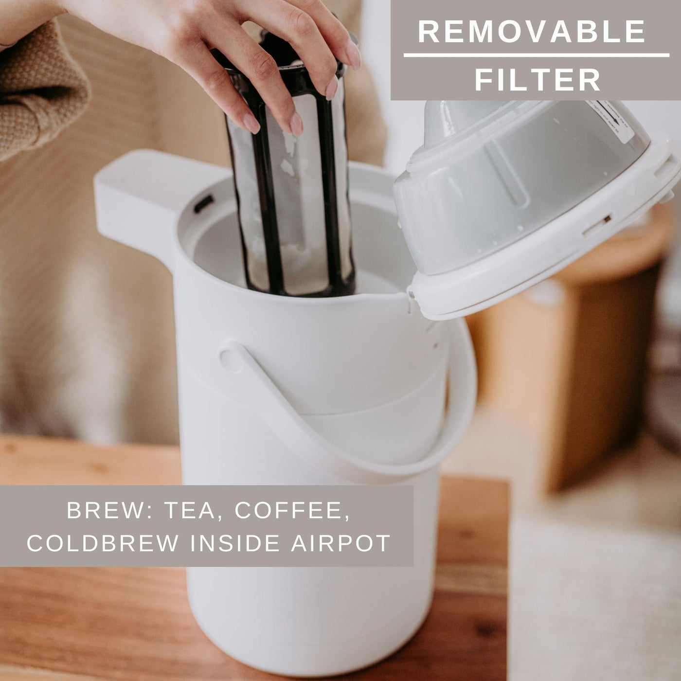 - Stainless steel airpot with a thermolock heat retention system for hot and cold beverages.